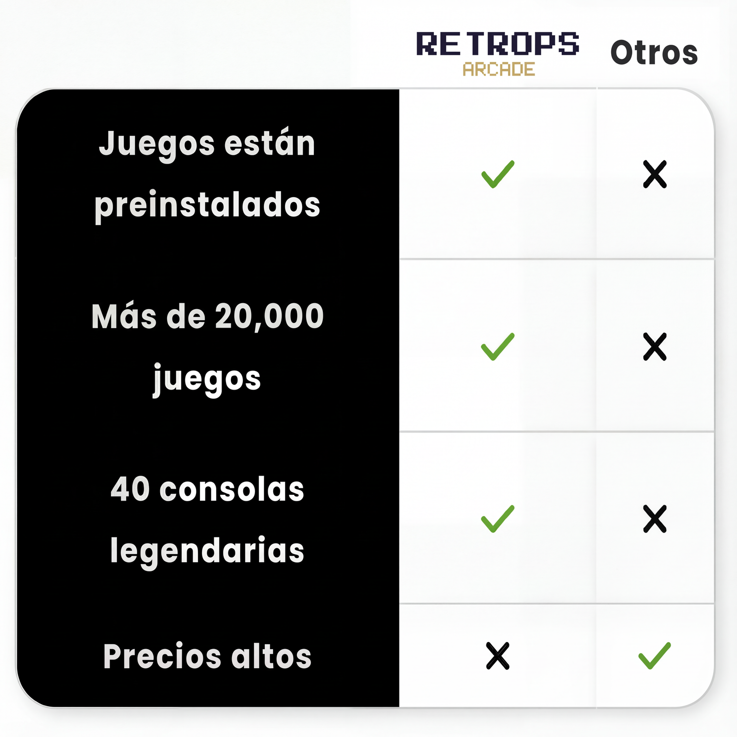 ¡Por supuesto! Tu Retrops Arcade™ ya viene con más de 10 000 juegos preinstalados.